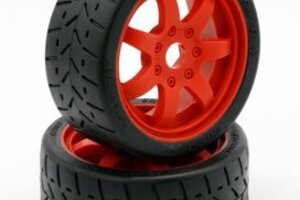 1/8 Gripper 42/100 Belted Mounted Tires 17mm Red Wheels